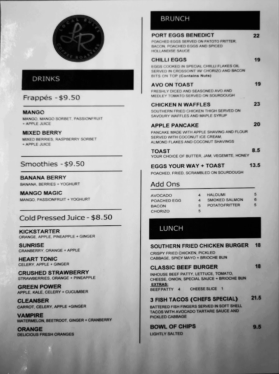 Welcome to Local Rules Coffee Roasters, a delightful café nestled in the heart of Port Melbourne. With its welcoming atmosphere and friendly staff, it's a haven for coffee lovers and food enthusiasts alike. The menu showcases a diverse selection of burgers that cater to all tastes, such as the mouthwatering Local Rules Burger and the unique Dr. Vegan Vegan Bun featuring pulled mushrooms.